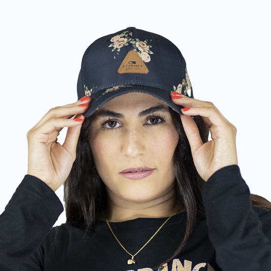 Midnight Navy Floral Baseball Cap – Vintage Rose Blossom