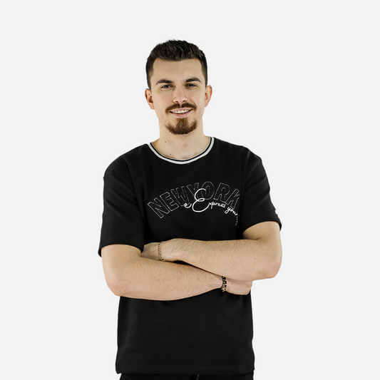 New York Relaxed Fit Cotton Summer Black T Shirt