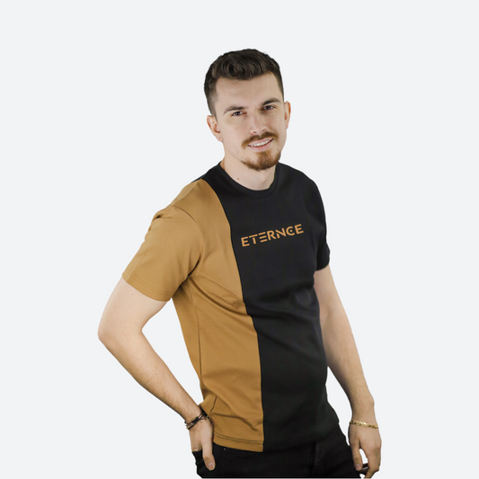 Men's Beige & Black Summer Cotton Crewneck T-Shirt