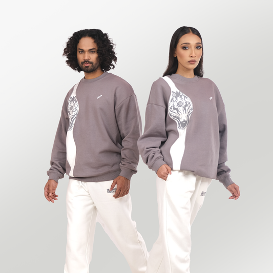 Ash Gray Wolf Print Oversized Crewneck Sweatshirt Unisex